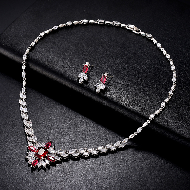 Foreign trade in Europe and the United States explosion bride wedding accessories wholesale jewelry set three piece red collar wholesale