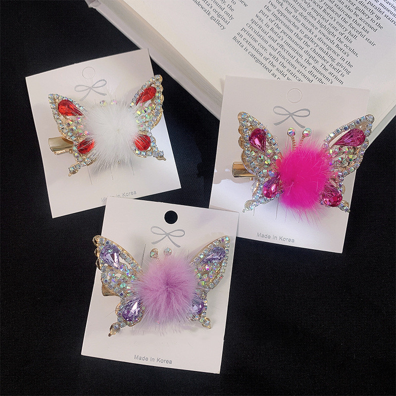 Women's Fashionable Mink Fur Moving Butterfly Hair Clip